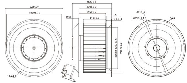 單進風(fēng)前傾式離心風(fēng)機YWFF355
