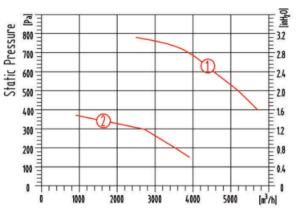 ①技術(shù)參數(shù):風(fēng)輪直徑355mm,由4極和6極額定電壓為230/400V,頻率50Hz三相異步運轉(zhuǎn)電機組成。最大風(fēng)量分別為5700m3/h和3900m3/h。