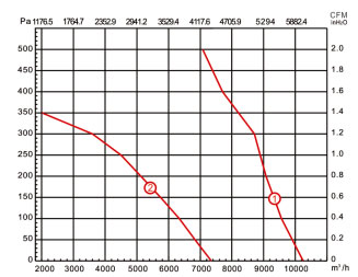 ①性能參數(shù):由4極和6極額定電壓為380-400V,頻率50Hz的三相異步電機(jī)組成,最大風(fēng)量為10250m3/h和7300m3/h。