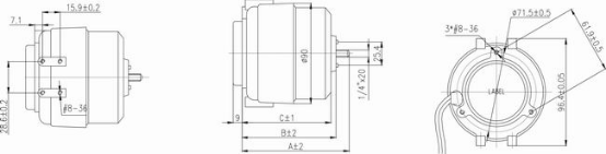 | 型號 | 額定電壓 | 頻率 | 輸入功率 | 輸出功率 | 額定電流 | 轉(zhuǎn)向 | A mm | B mm | C mm |